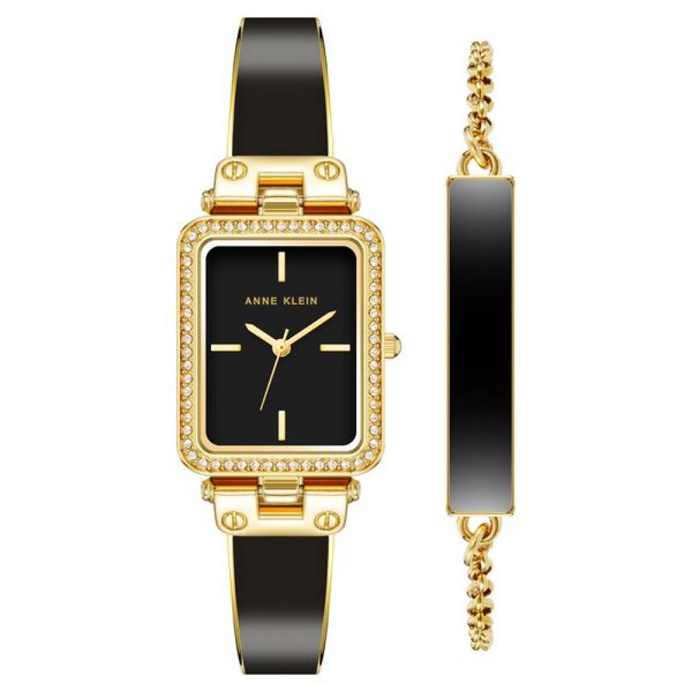 طقم ساعة ان كلاين ذهبي اسود نسائي