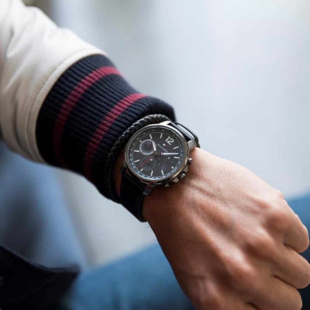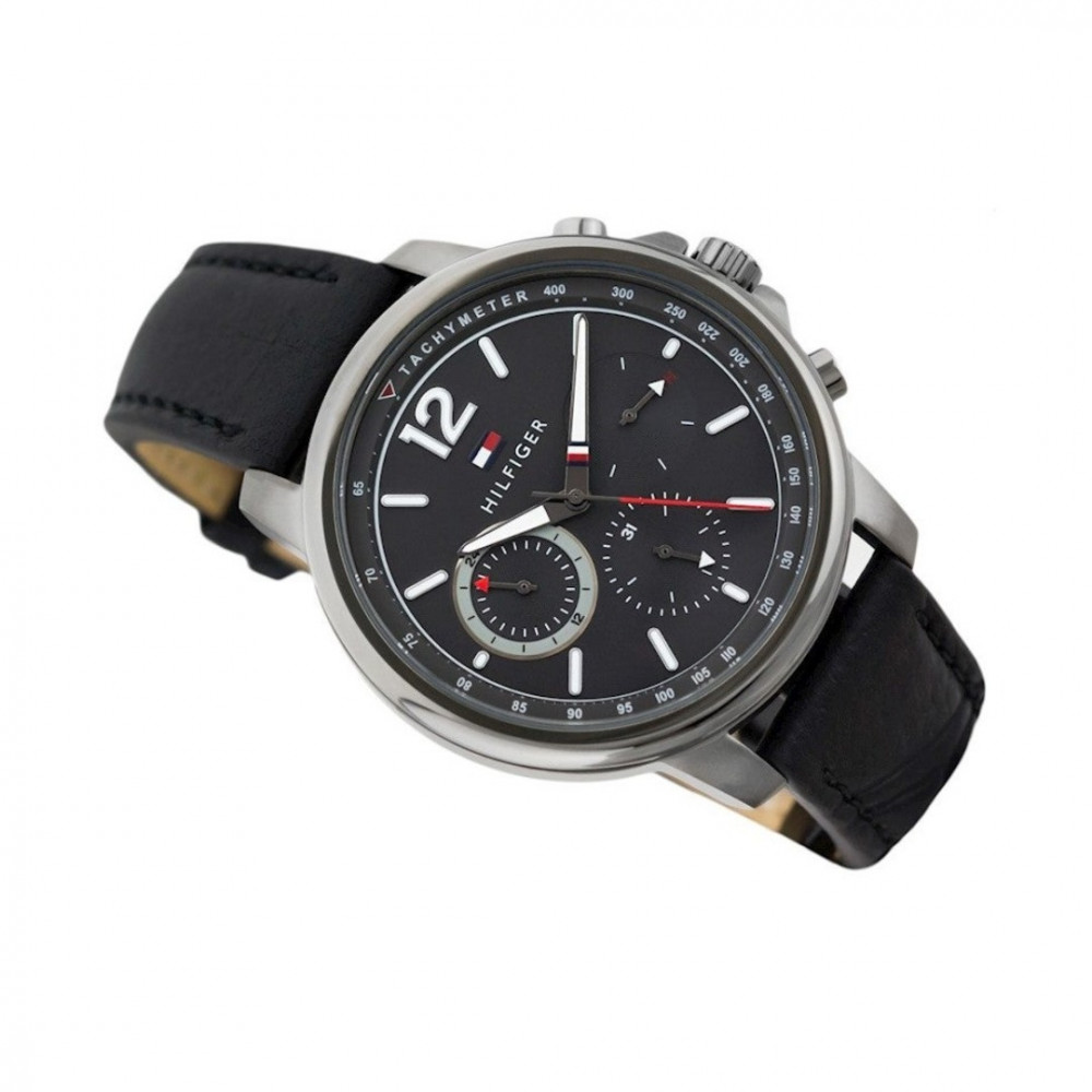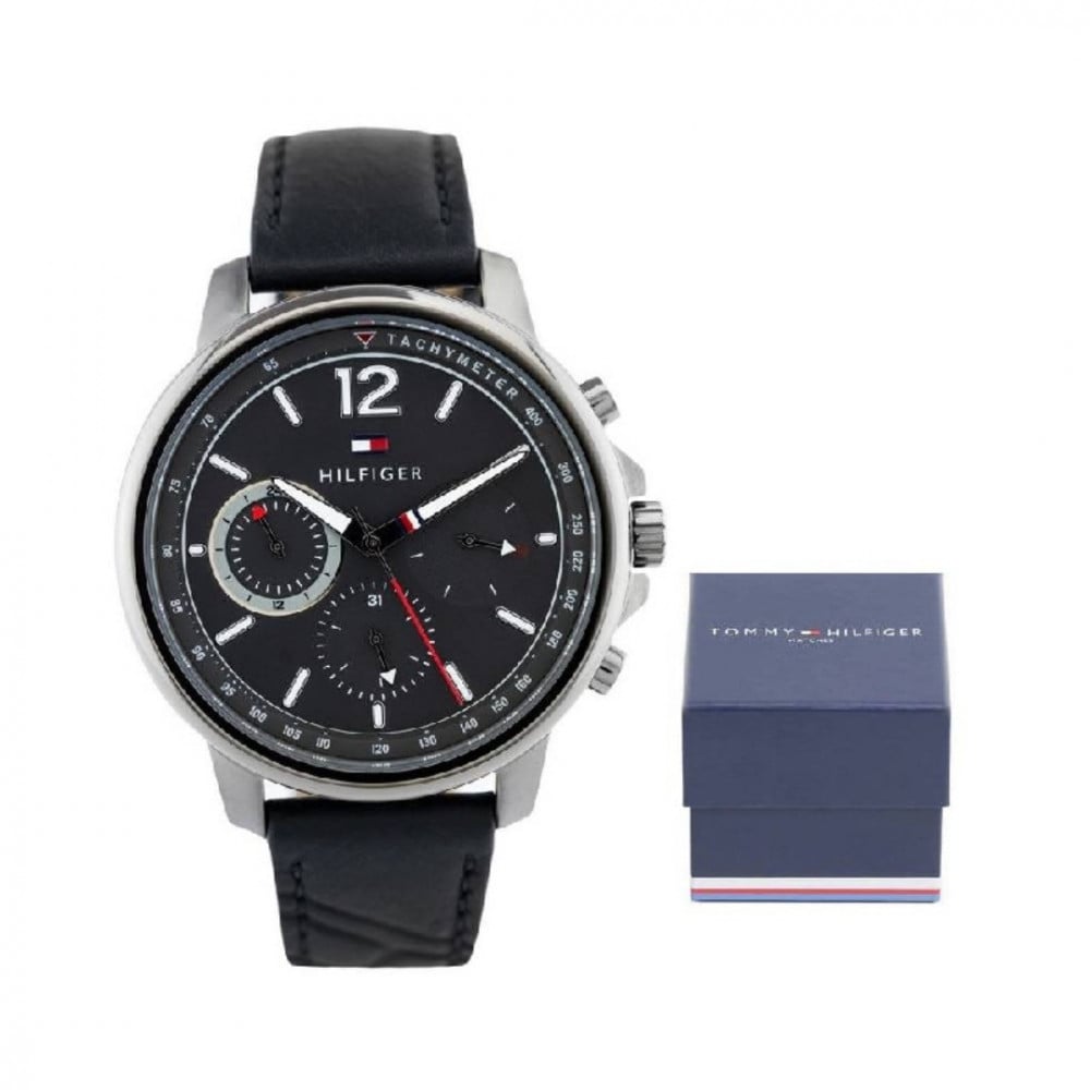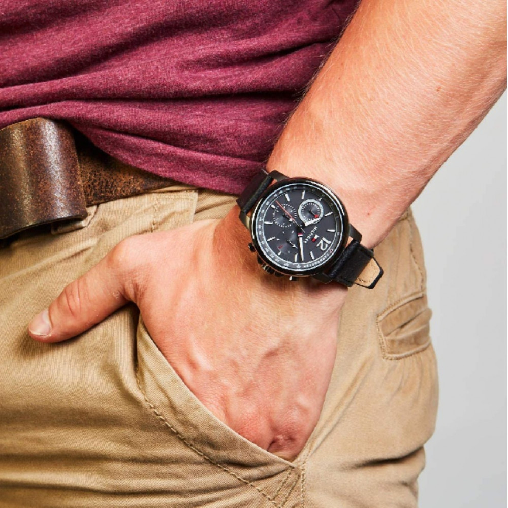 ساعة تومي هيلفيقر رجالي جلد اسود