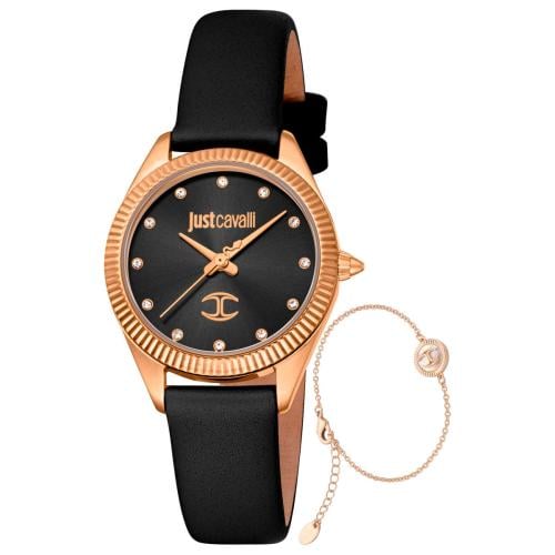 طقم ساعة جست كافالي اسود روز قولد نسائي